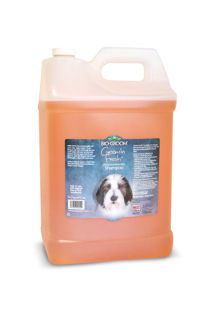 Groom 'n Fresh™: Lugtfjernende, sulfatfri shampoo. Groom'n Fresh™ er en sulfatfri shampoo, der er udviklet til at fjerne kæledyrs lugt og holde kæledyrenes duft dejlig frisk og ren. Sikker at bruge med topiske loppe- og flåtbehandlinger. Anbefalet af topopdrættere og professionelle groomere over hele verden. Cruelty Free – Sæbefri.