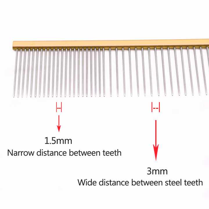 Denne store metal kam er ideel til hunde med fyldige pelse, såsom dobbeltpelsede racer og krøllede pelse som pudler. Med en pin-afstand på 3 mm og en finere ende med 1,5 mm mellemrum giver den både grundig udredning og præcis finkæmning. Kammen fungerer som dine øjne i pelsen, så du nemt kan tjekke for filtre uden at skade hårstråene. Et must-have til effektiv pelspleje!