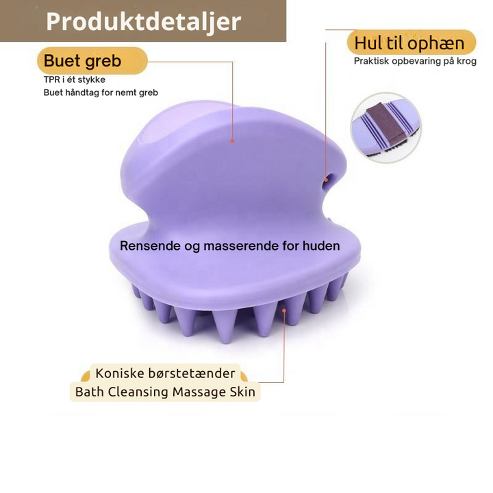 Blid massagebørste med ergonomisk håndtag for et behageligt greb. Perfekt til brug under bade eller på tør pels – fjerner løse hår, stimulerer huden og forbedrer blodcirkulationen. Forvandler pelspleje til en afslappende oplevelse, som din hund vil elske.