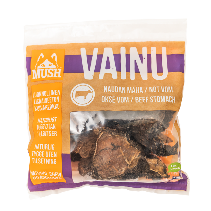MUSH VAINU® Oksemave egner sig på grund af sin form i strimler forbavsende godt, også til kæledyr med mindre munde. Mavestrimlerne kan nydes på mange måder, f.eks. ved at dyrene gumler dem hurtigt i sig eller sutter langsomt på dem. Mavestrimlerne egner sig også godt som adspredelse for katte med kraftige kæber.